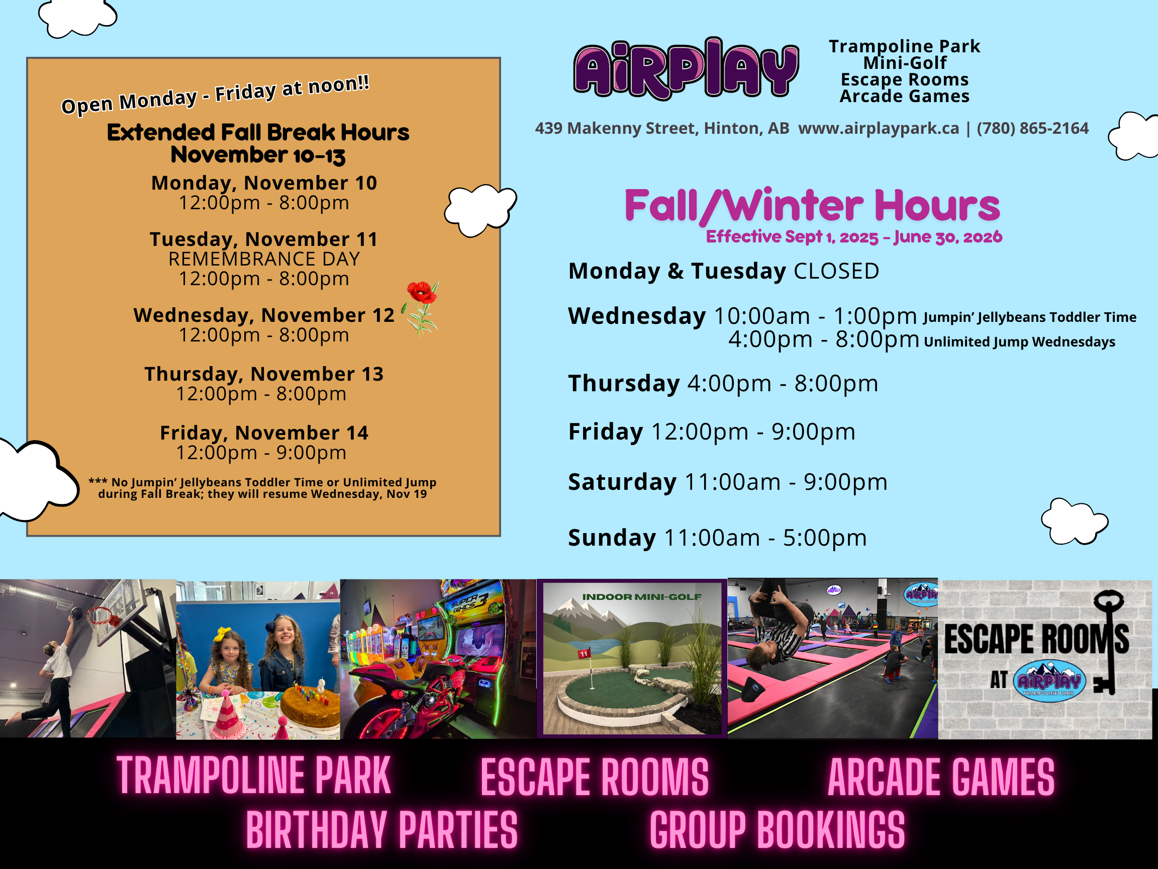 Plan your experience at Airplay Park and BOOK ONLINE today!