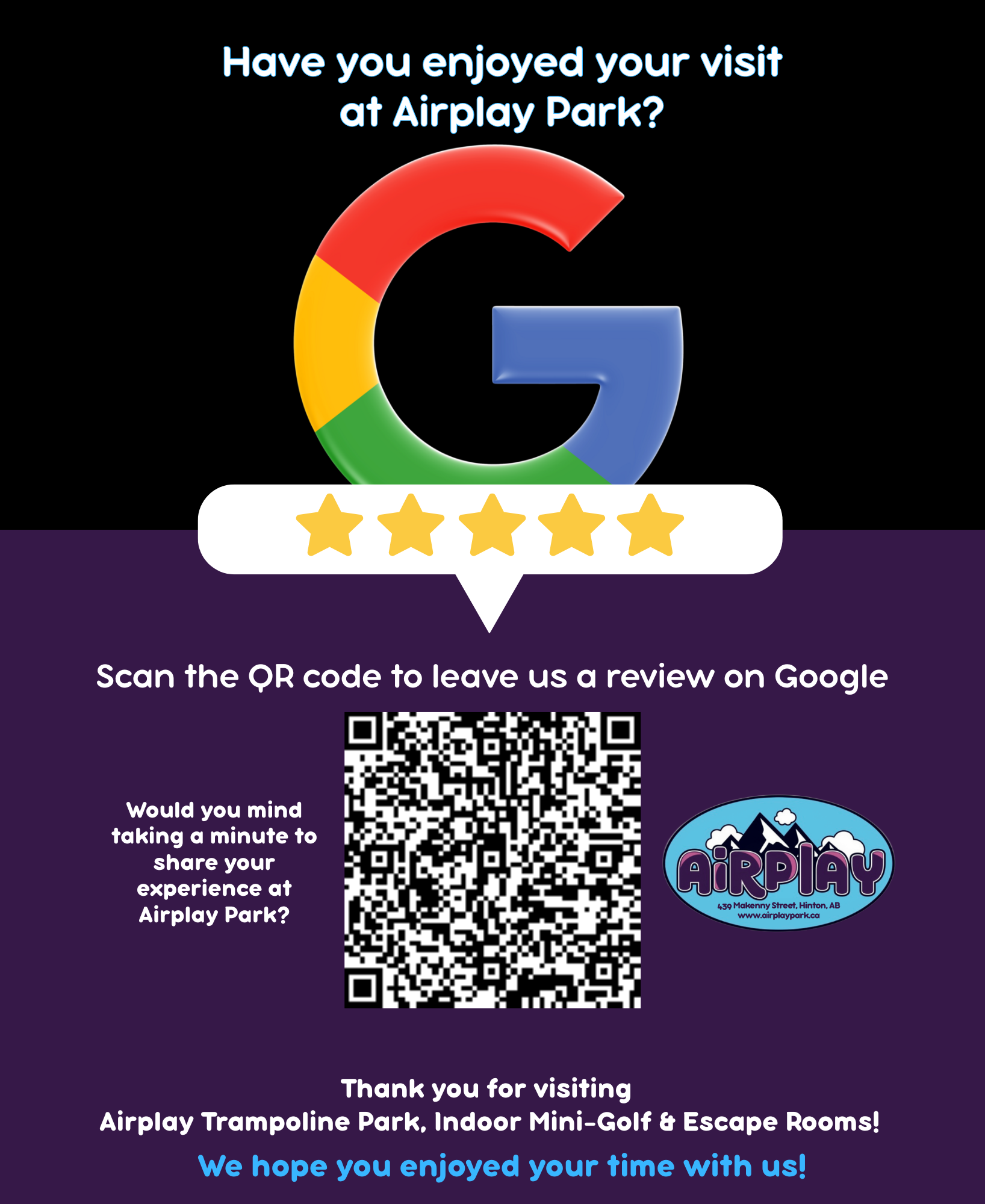 Please drop off a copy of your resume to Airplay during our hours of operation or you can email it to inbox@airplaypark.ca